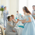最大160名まで収容できるパーティ会場を広々使ったパーティプラン。ゲスト同士の適切な距離感を保ちながら、親族の皆様へのお披露目を中心とした内容。幅広い年齢層から指示が高い和フレンチがお勧め◎