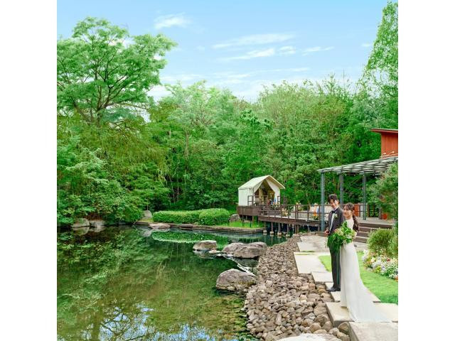 【ゲスト目線で会場や演出をチェック!】4000坪の広大な森にトレンドの「グランピング」が楽しめるテントハウスが誕生!オシャレ可愛いフォトスポットでの記念撮影など「森ウエディング」の魅力も体験できる