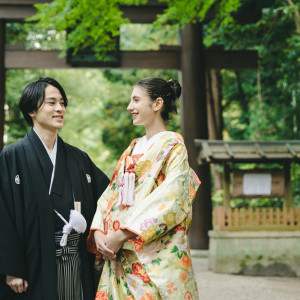 春日大社の境内での写真撮影は挙式をされる方だけの特別なこと。歴史息づく舞台で絆を固く結ぶ瞬間を残していただけます。前撮りの日に、おふたりだけの挙式を春日大社でなさる方も増えています。