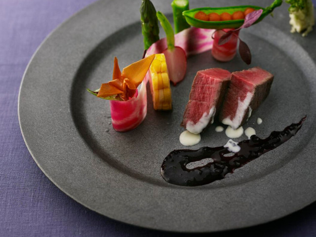 大人気の萩の醤油ソースでいただくマグロのオードブルとA5ランク黒毛和牛のステーキを試食すれば、金本シェフの素材を選ぶ基準の高さが伝わります★1つ1つのソースの味の繊細さに和のテイストを感じて・・・♪