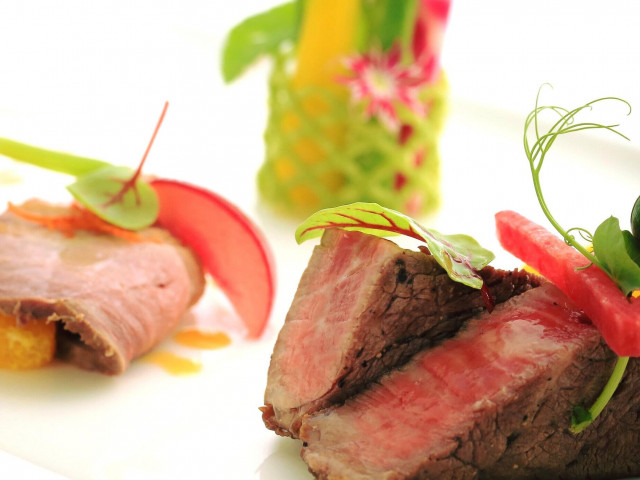 大人気の萩の醤油ソースでいただくマグロのオードブルとA5ランク黒毛和牛のステーキを試食すれば、金本シェフの素材を選ぶ基準の高さが伝わります★1つ1つのソースの味の繊細さに和のテイストを感じて・・・♪