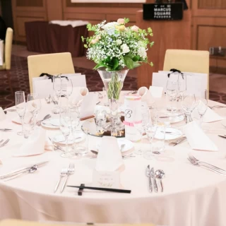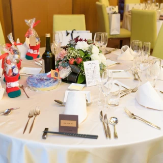 参列者全員が座れて、広々としていた。窓から光がさして、ウェディングドレスがより一層綺麗に見えた。各テーブルやメインテーブルの花、照明等全てを合わせて落ち着いた雰囲気だった。種類が豊富でどれも美味しく、大満足だった。エビやアワビなど食材にこだわっているのが分かった。都心部から少し離れているので、シャトルバスがあって良かった。披露宴会場に、新郎新婦が登場する際にスタッフの方が集まって声を出しているところをみて、チームワークの良さが伝わってきた。また、当日宝くじのように作成した抽選会もあり、ゲストも楽しんで披露宴に参加できた。披露宴会場の入り口がカーテンで仕切られており、お色直しの後などカーテンの隙間から、新婦が見えるのが少し残念だった。詳細を見る (320文字)