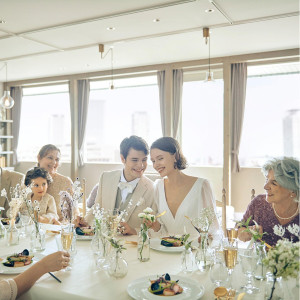 ワンフロア完結の館内はチャペルからパーティ会場への移動も少なく、全館バリアフリーのためどの年代のゲストの方にも安心してお過ごしいただけます。トイレにはベビーベッド完備、お子様用食器やキッズスペース用マットなど結婚式当日のサポートもご安心ください