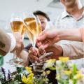 「1.5次会」とは披露宴と二次会の中間のパーティスタイルのこと。海外挙式やリゾート婚を行ったカップルが開くことが多く、披露宴よりもカジュアルな形式や演出が特徴です。また、親族のみの挙式の後に、親しい友人などを招くお披露目パーティなども含まれることがあります。ビッフェスタイル、着席スタイルのどちらも対応できるケースが多く、パーティ進行に合わせて選択するとよいでしょう。