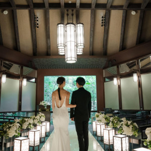 あたたかな木目調の挙式会場は白無垢も似合い、おしゃれな花嫁様や女性ゲストにも大好評。