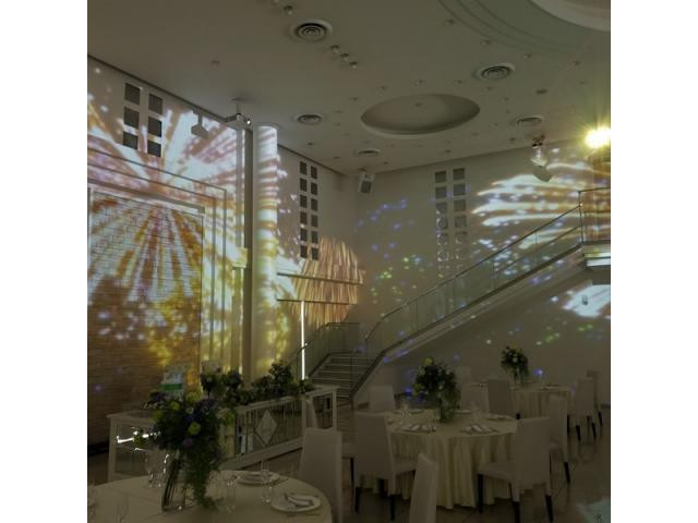 【プロジェクションマッピング演出を体験】2つある披露宴会場には、どちらも360度の映像演出が可能♪階段や中庭の入場もできる会場だからこそ、ゲストもワクワクする様々な演出を体験してイメージを膨らませて!