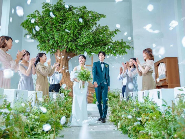 【独立型チャペルArch】壁三面がガラス張りの真っ白なチャペルでの挙式入場体験♪開放的な挙式会場はあたたかな日差しも差し込むアットホームな挙式が叶う!お祝いを近くでいただけるあたたかな距離感での挙式を