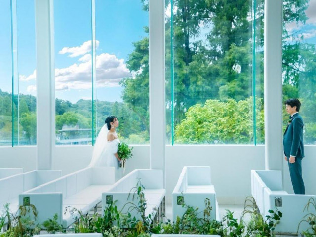 | おすすめ ポイント | 3面をクリアガラスに覆われた真っ白な内観に差し込む陽光で、花嫁がより美しく惹き立てられる。 |