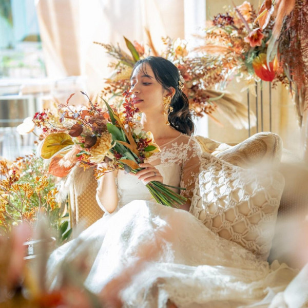 《1件目来館特典|東山公園駅,名古屋駅⇔会場間送迎バスプレゼント》紅葉に包まれるガーデンテラス東山での秋婚。美食と映像演出が彩る一日を貸切空間でゆったりと!人気シーズンを早期予約でお得に叶えて。
