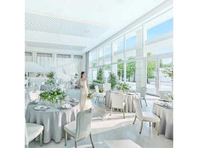 【選べるガーデン&プール付き貸切邸宅(2名~150名可能)】30名以下の会食会場もあり!プールテラス付きナチュラルな会場と、緑のガーデン付き階段入場できる純白・華やかな会場をお好みでお選び頂けます