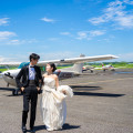 新プラン「空とセスナ@竜ヶ崎飛行場」は、様々なアーティストのMVやドラマ映画の撮影場所としても有名な「竜ヶ崎飛行場」で貸切フォトウェディング撮影ができるプランです。大空を背景に迫力のある飛行機と!!