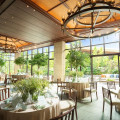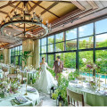 | おすすめ ポイント | 大きな窓を張り巡らせた開放感あるセレモニースペースでは、豊かな緑と水のせせらぎに包まれるナチュラルで優しい挙式が実現する。 |