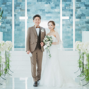 挙式会場はウエディングドレスが映える白を基調とした会場でバージンロードが広くとても素敵な会場でした。ガラス張りのチャペルは緑と水に囲まれた自然豊かな会場で神秘的でした。披露宴会場は窓が大きく明るく開放的な雰囲気の会場でした。白を基調とした会場なのでお花やテーブルコーデイネートで自分たちらしい空間づくりができるなと思いました!試食させていただいたお料理はとてもボリューミーで美味しかったです。特にお肉料理とオマール海老が絶品でした!ゲストの方にも喜んでいただけると思いました。最寄りのインターからも近く、場所も分かりやすくて良かったです。説明も接客も丁寧で好印象でした。1日2組限定の全館貸切の式場なので特別感、プライベート感が味わえる結婚式場です!授乳室に披露宴会場の様子が見れるモニターがあるのはうれしいポイントでした。緑や水に囲まれた式場なので、自然が好きなカップルにはおすすめです!詳細を見る (395文字)