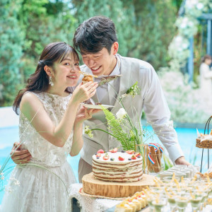 | ガーデン演出 | 有り開放感溢れるバンケット隣接するガーデンからの入場やデザートビュッフェなど。 |