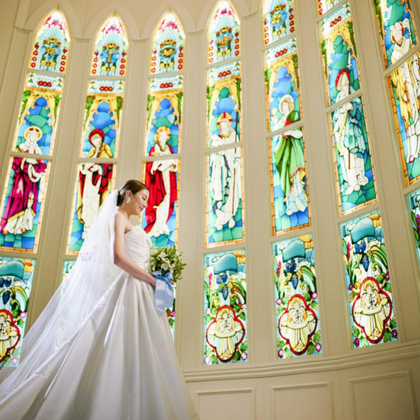 | おすすめ ポイント | ステンドグラス輝く大聖堂でのチャペル挙式の後は 全天候型のアトリウムでゲストに囲まれながら 思う存分楽しめるアフターセレモニーを。 |