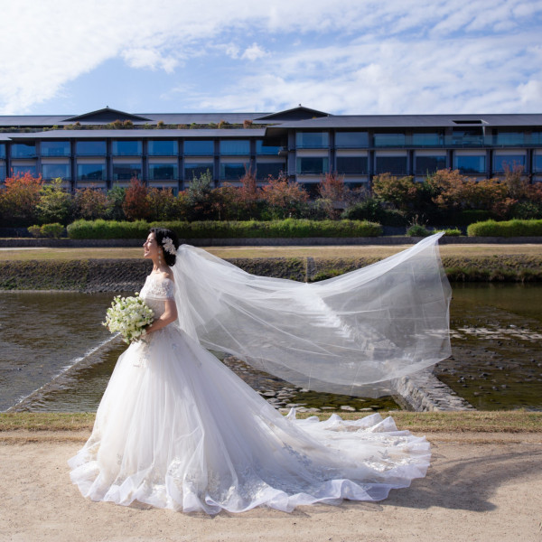 平日・1日1組限定でフォトウエディングと、鴨川と東山三十六峰を見渡すゲストルームでのご宿泊がセットになったプランです。 ※ご予約は撮影日より3か月前から、お問い合わせは4か月前よりご案内可能です