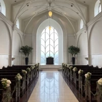 挙式会場は、正面の大きなガラス窓から自然光が差し込み、明るい雰囲気でした。白を基調とした装飾が美しく、とても品がありました。詳細を見る (362文字)