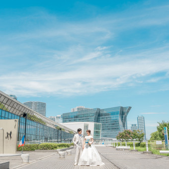 横浜港をバックにロケーションフォトが楽しめます