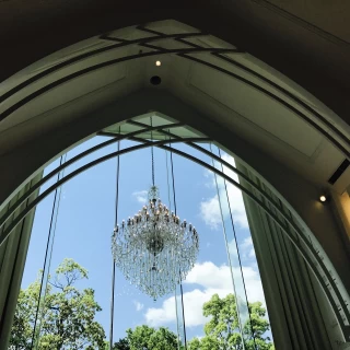すごいほどの白いデザイン、かつ、さらに天井はとっても高くて伸びやかな開放感あり。祭壇の背景をなす壁面、つまり正面のところは、ほぼ全域に渡ったガラス面となっていて、森のような木々と空とがともに見えて、屋外での森林浴のような居心地を体感。体を突き抜けていくような爽快感の中、儀式に参列できて素敵な時間となりました。真っ白デザインの内観と、そんな中だからこそ目立つ屋外のプールがや庭園設備がすごく配合よくて、とっても爽快な心地のルームが完成されてました。シャンデリアもかなり大きいものがあってエレガント系なムードづくりも絶妙。あと階段を使ってお二人が降りてくる演出もありましたが、見届けやすくてよかったと思います。府中インターから降りて、あとは下道にて10分くらいだったと思います。祭壇の背景をなすその面全域にわたって広がるガラス面という大いなる壮大なデザインには驚きました。開放感が違いましたね。詳細を見る (396文字)