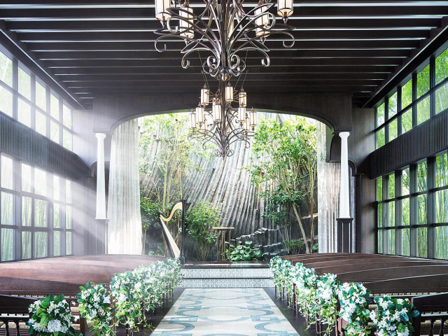 【緑・自然光溢れるチャペル入場体験】ふたりのイメージに合わせて創り上げるオリジナル挙式をご提案。挙式後は隣接する庭園での家族集合写真も◎「どの世代も居心地よく過ごせる」自然美溢れる空間を体感下さい