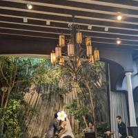 竹林がある庭は、乾杯のときに見える・出てくるような演出でお願いしました。メインテーブルの装花は予算の関係で落ち着いた形に留めておりましたが、逆に竹林や自然光が目立ち、派手にせずでよかったなと思いました。