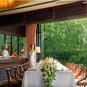 | ガーデン演出 | 有り緑に囲まれたガーデンテラスを贅沢に使って、動きのある演出を楽しめるのも魅力。 |
