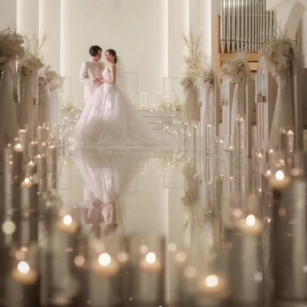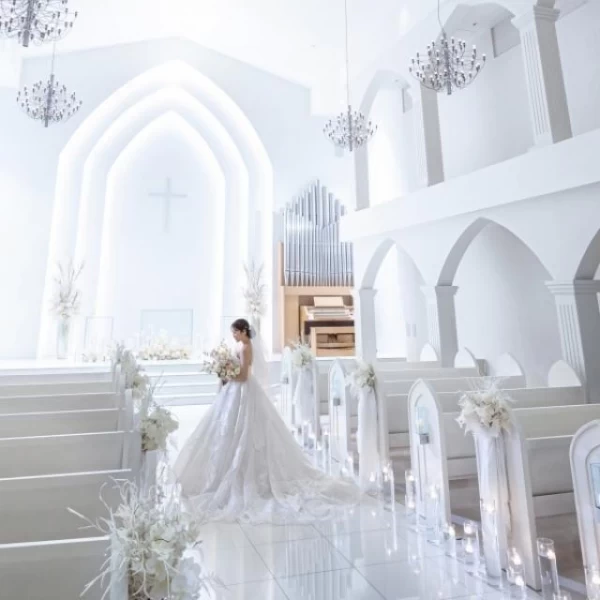 挙式料(人前式)当式場で一番人気の高い、独立型のチャペルです。 オルガニスト、トランペッター、フルート奏者の生演奏で司会者が進行を務めます。 おふたりらしいオリジナリティのある挙式スタイルです。