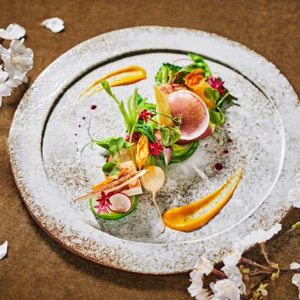 大和フレンチフルコース奈良の”大和食材”を使用した地産地消の創作フレンチ。幅広い年齢層の皆様にもお楽しみ頂けるよう、和食をベースとした味付けのオリジナルフレンチはお箸で食べることができるためゲストには大人気!!