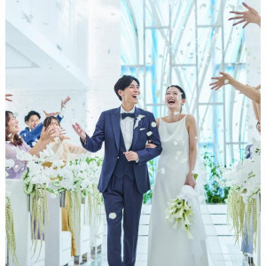 | おすすめ ポイント | 【水庭に浮かぶ楽園のチャペル】 白基調のチャペルに自然光が降り注ぐ。曲線の美しいブルーのステンドグラスや華やかなシャンデリアが印象的 |