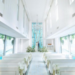 | おすすめ ポイント | 【水庭に浮かぶ楽園のチャペル】 白基調のチャペルに自然光が降り注ぐ。曲線の美しいブルーのステンドグラスや華やかなシャンデリアが印象的 |