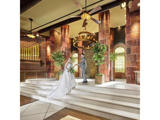 【3万個のレンガに包まれたチャペルで感動の入場体験】足を踏み入れれば誰もが心奪われる、美しい赤レンガ造り。職人手焼きのレンガを一つずつ積み上げた、優しさと温もりに溢れる空間で特別な時間を体感ください。