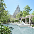 庭の緑と涼やかな水音、木の温もり...自然素材の持つ寛ぎに和の情緒が息づくガーデン・リビング。水辺に建つ凛とした幻想的な空間。水と緑を背景に自然を楽しめる全天候型バンケットがお得に!