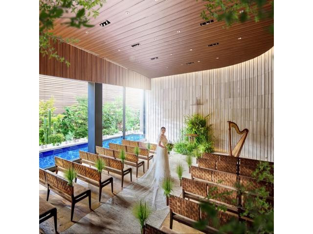 【当館人気No1*感動のチャペル挙式体験】木・緑・水・石・風の自然素材を使用したこだわりのデザイナーズチャペル。素材・設計にこだわった自然光溢れる空間で感動の挙式を体験【1件目来館特典】挙式料OFF
