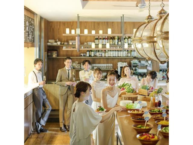【6名~の貸切会場】座席を減らした三密対策のレイアウト!臨場感のあるオープンキッチンでの料理演出や、ゲストと楽しめるガーデンテラスのデザートブッフェなど少人数んらではの理想の結婚式を叶えて♪
