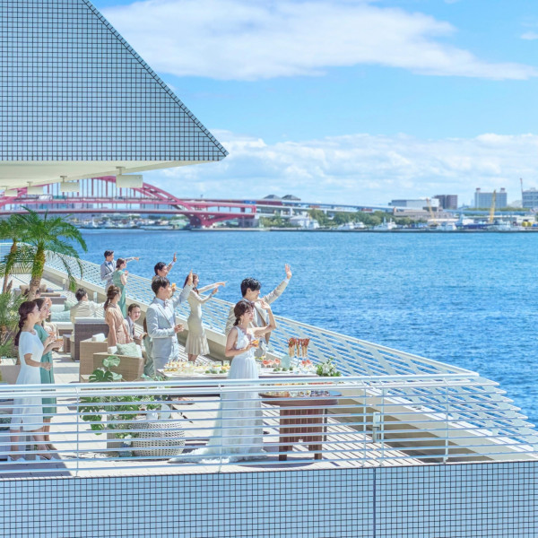 席料/会場費山・海・空と、見渡す限りの神戸らしいロケーションを独占するパーティルーム(自由に外に出られるプライベートバルコニー付) ※会場により会場費が異なります。