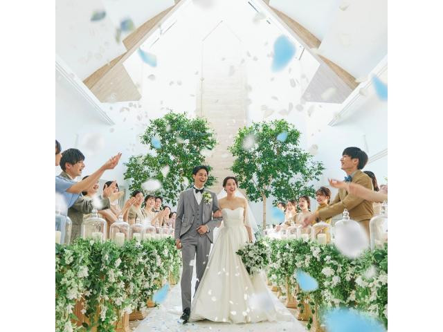 【緑と光あふれるチャペル。感謝の気持ちを伝える時間】祭壇には高さ4mのシンボルツリー、天窓から射し込む自然光が挙式シーンをより印象的に演出。チャペルでの入場体験などナチュラルウエディングを体感できます