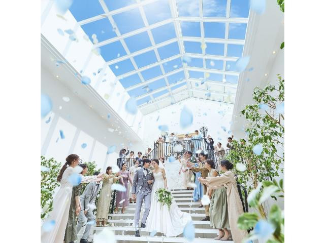 | おすすめ ポイント | 3つの選べる会場は、すべてテラス付で開放的で自然体に楽しめる空間です。さらに憧れの階段入場やおもてなしのオープンキッチンなど充実のラインナップが揃っています!