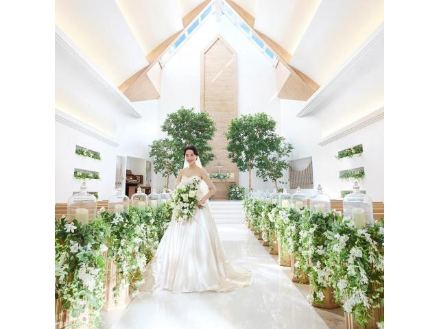 【緑と光溢れるチャペル。感謝の気持ちを伝える時間】祭壇には高さ4mのシンボルツリー、天窓から射し込む自然光が挙式シーンをより印象的に演出。チャペルでの入場体験などナチュラルウエディングを体感できます
