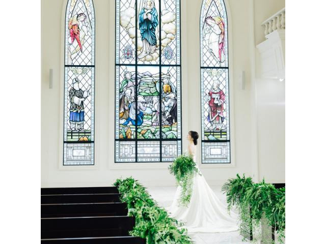 【ステンドグラス輝く白亜の大聖堂】全長10mのバージンロードと圧巻のステンドグラスが輝く教会…憧れの挙式を叶えよう♪