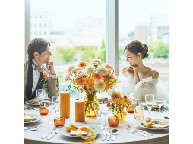 6スタイルのパーティ会場で、それぞれのコーディネート見学を体験。またオーシャンビューを体験しながらこだわりの料理試食も愉しめる。随所がフォトスポットの空間美をフェアで確認してみて。