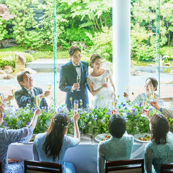 おすすめ ポイント | 前面に広がる庭園の緑と自然光が差し込む明るい会場で大切なゲストをおもてなし