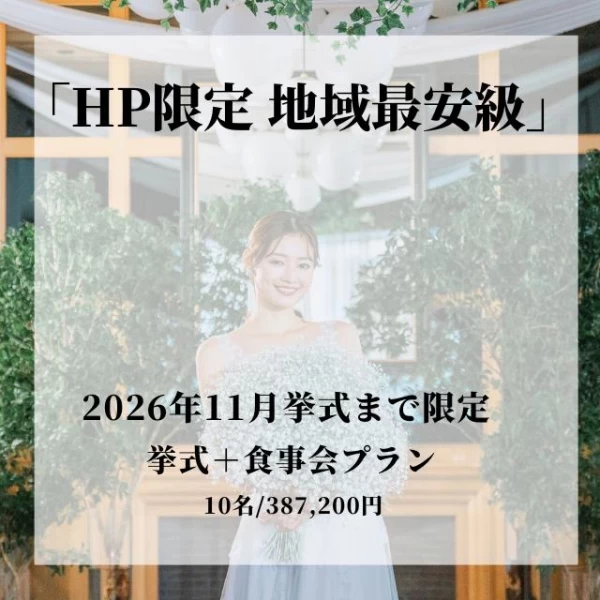 【2026年11月末挙式まで限定☆12大特典】少人数婚をお得に挙げよう!準備期間が短くてもOK、打合せ回数は少なく楽々!手間なくスムーズにシンプル+上質な結婚式!オーダーメイドコース料理を堪能できる