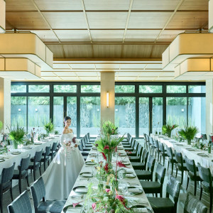 そんなおふたりにぴったり!TRUNK(HOTEL)では天候に左右されない室内でもガーデンウェディングを感じて頂けるように、日本初の三面ガラス張りデザインの披露宴会場をお届します。