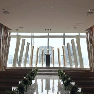 白を基調とした会場で両サイドには木目と緑があり、晴れの日には自然光と青空広がる素敵な空間でした。親族合わせ、全体で50人参列の挙式でしたが、座席に余裕があり、60人は入れる感じがしました。バージンロードも長過ぎず、短過ぎずで程よい距離感でした。新郎新婦の背面がガラス張りで、景色は最高でした。照明も明るくて、60人は余裕で座れるくらいの広さです。お花や料理に関してはこだわりがありましたので、多少の値上がりはしても、綺麗さや美味しさを優先しました。手作りできる小物やウェルカムサービスはこちらで準備して、出費を減らしました。エビやお肉など、シェフの味付けが一流で、参列してくれた皆が美味しかったよ!と言ってくれました。お茶漬けも美味で1人で14杯もおかわりした強者もいました。梅田の地下から繋がっており、雨の日でも濡れずに式場までたどり着くことが可能でした。33階に位置しているため、天気の良い日には大阪の街を見渡すことができます。常に笑顔で、こちらの要望にも真摯に向き合って対応してくださいます。打ち合わせから式当日までも親切、丁寧で、プランナーさんのお陰でとても良い式になりました。どのサービスを取っても満足しています!式当日もスタッフの方々の細やかな気配りに支えられながら、最高の式を挙げられました。打ち合わせもわかりやすく、丁寧に説明してくださったので、準備も進めやすく、また当日に関してはスタッフさんにお任せしていた一面もありました。詳細を見る (622文字)