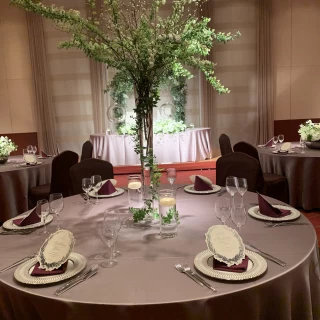 ハープの生演奏があり、水や石をイメージして造られた他にはない雰囲気が味わえます。カラーも変えることができ、それぞれのイメージする結婚式に合わせてコーディネートできます。さすがホテルの披露宴会場といった、天井が高く広い会場を使えます!高さのあるお花や木で飾ったテーブルコーディネートがすごく映えて良かったです。新宿駅からは距離がありますが、シャトルバスがあるので不便には感じませんでした。周りには都庁などがあり、田舎からのゲストは喜ぶような立地にあります。すごく丁寧に説明してくださり、気持ちが良かったです。高齢者や遠方の家族も、ホテルで宿泊でき当日の移動が少ないことが決め手でした。少し落ち着いた純和風の雰囲気が好みの方にオススメです。詳細を見る (318文字)