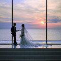 オーシャンビュー会場ならでは「サンセット挙式」が叶う!トワイライトの時間帯で移り行く景色を眺めながらの披露宴は「ナイトディナー」のようなロマンティックな雰囲気に。本プラン限定のお得な特典も◎