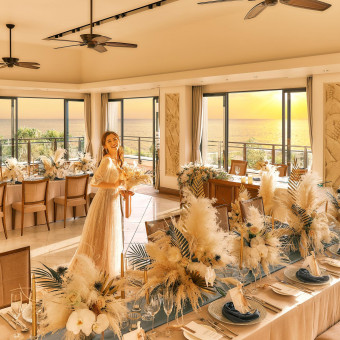 | ガーデン演出 | 有りオーシャンビューのテラスでは、海をバックにゲストとの写真撮影をお楽しみいただけます。 |