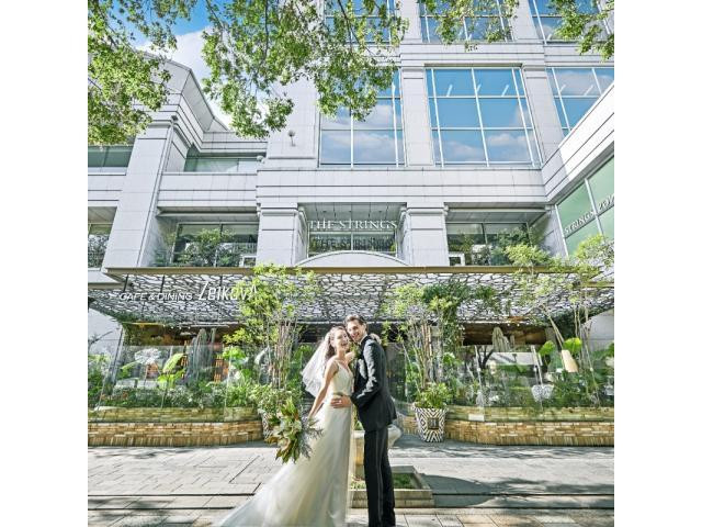 表参道のランドマークである「ザ ストリングス表参道」では外観前でのロケーションフォトが人気。当日は先輩花嫁のおすすめ感動ムービーを大型スクリーンで上映。