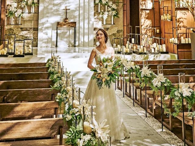 【天高6M×まるで欅並木道を歩むような木漏れ日溢れる空間】バージンロード15Mのデザイナーズチャペル。家族の絆を感じるキャンドルセレモニーでオリジナル人前式も。生演奏が響く洗練上質空間で感動の挙式体験
