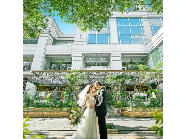 表参道のランドマークである「ザ ストリングス表参道」では外観前でのロケーションフォトが人気。当日は先輩花嫁のおすすめ感動ムービーを大型スクリーンで上映。